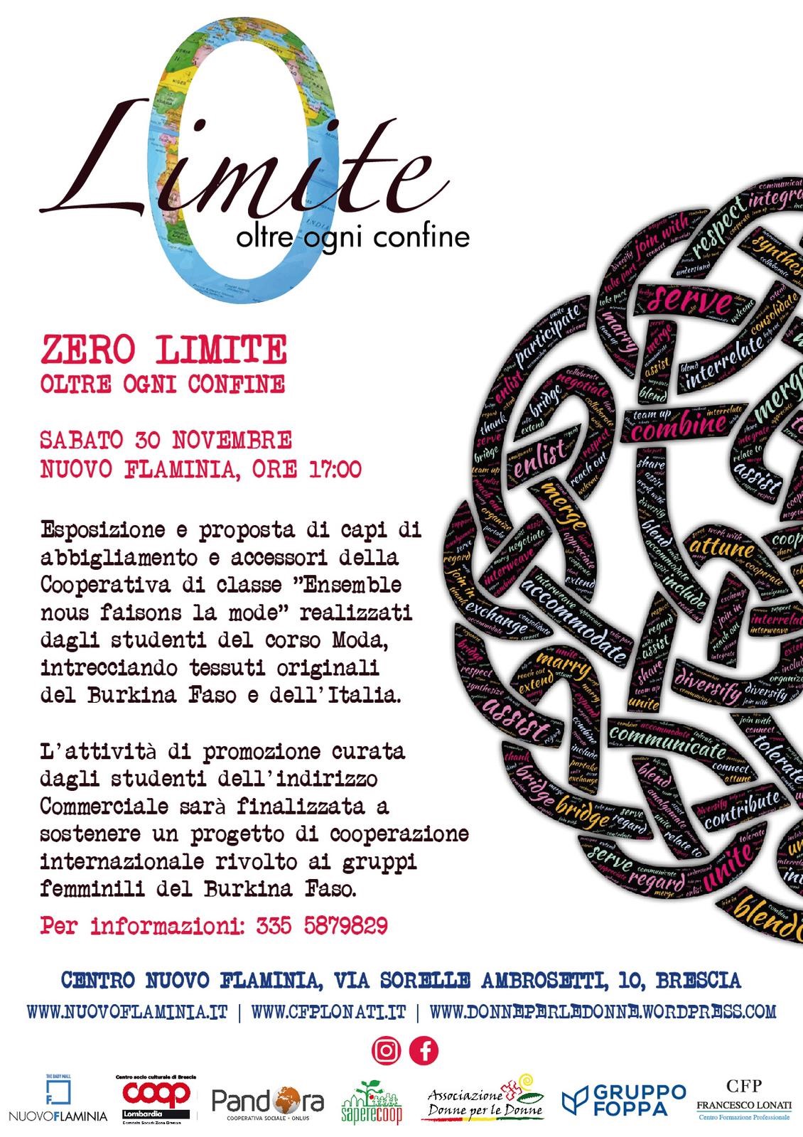 Sabato 30 novembre al Centro Commerciale Nuovo Flaminia si è conclusa “Zero limite. Oltre ogni confine”, l’attività coordinata dalla Cooperativa Pandora e curata dagli studenti dell’indirizzo Commerciale Lonati di Brescia, che punta a sostenere un progetto di cooperazione internazionale rivolto ai gruppi femminili del Burkina Faso.