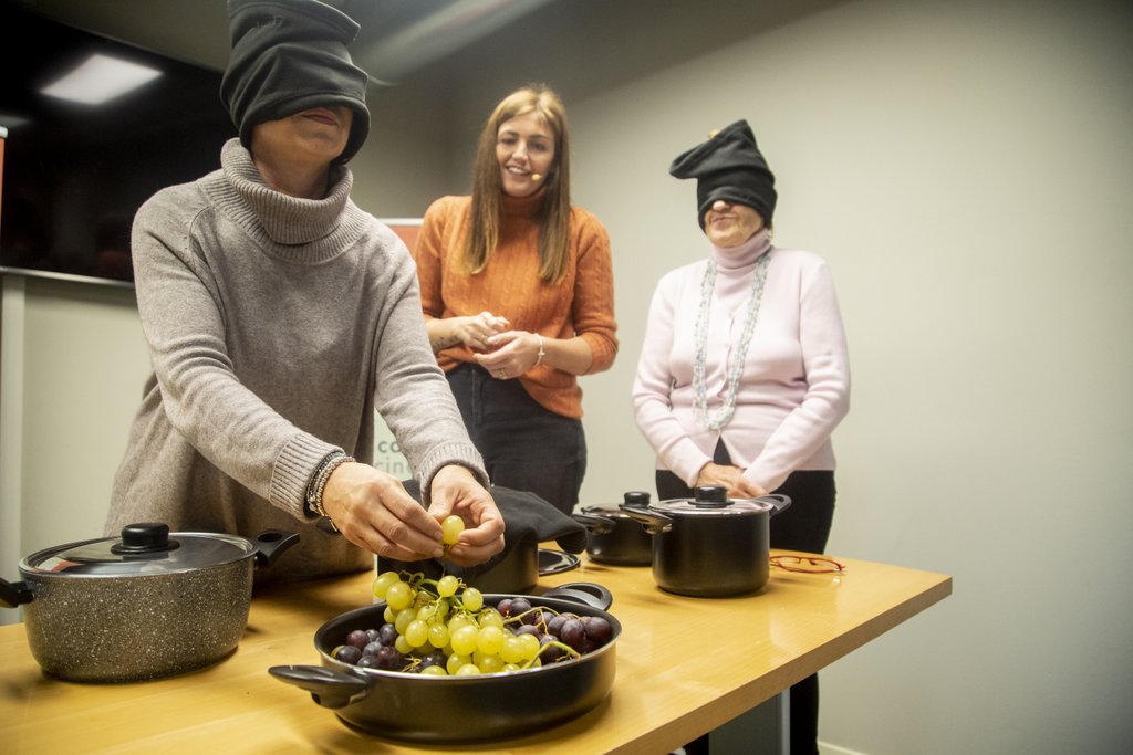 Alcune volontarie sono state infatti bendate e, sotto la guida della Maci, hanno utilizzato gli altri sensi per capire quale alimento avessero di fronte.