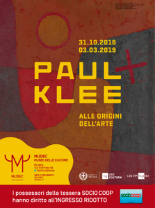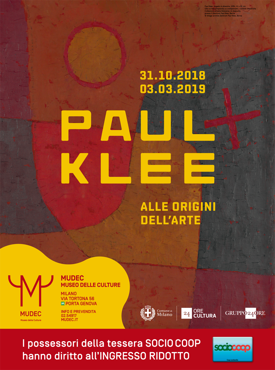 Dal 31 ottobre 2018 al 3 marzo 2019 il Mudec ospiterà la mostra Paul Klee. Alle origini dell’arte, a cura di Michele Dantini e Raffaella Resc: un’ampia selezione di opere di Klee sul tema del “primitivismo”.