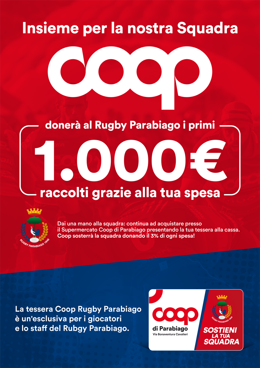 Grazie alla partnership iniziata a luglio 2018, presentando la propria tessera alla cassa del negozio Coop di Parabiago, i giocatori e tutti i tesserati del Rugby Parabiago hanno la possibilità di sostenere la propria squadra donando il 3% di ogni spesa.