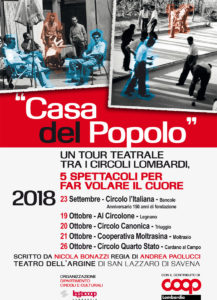 Dal 19 ottobre andrà in scena tra i circoli lombardi “Casa del popolo”, un tour teatrale di 5 spettacoli che faranno volare il cuore.