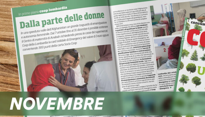 Tra le pagine dedicate alle azioni di Coop Lombardia, è possibile leggere il racconto di quanto avviene in una lontana e isolata valle dell’Afghanistan, dove al fianco di Emergency la nostra Cooperativa sta cercando di contribuire a mantenere un grande traguardo di emancipazione e autonomia femminile. Fino al 31 dicembre puoi sostenere il Centro di maternità di Anabah richiedendo presso le casse di tutti i supermercati e ipermercati la card solidale di EMERGENCY del valore di 3 euro, oppure convertendo 300 punti della tua carta Socio Coop.