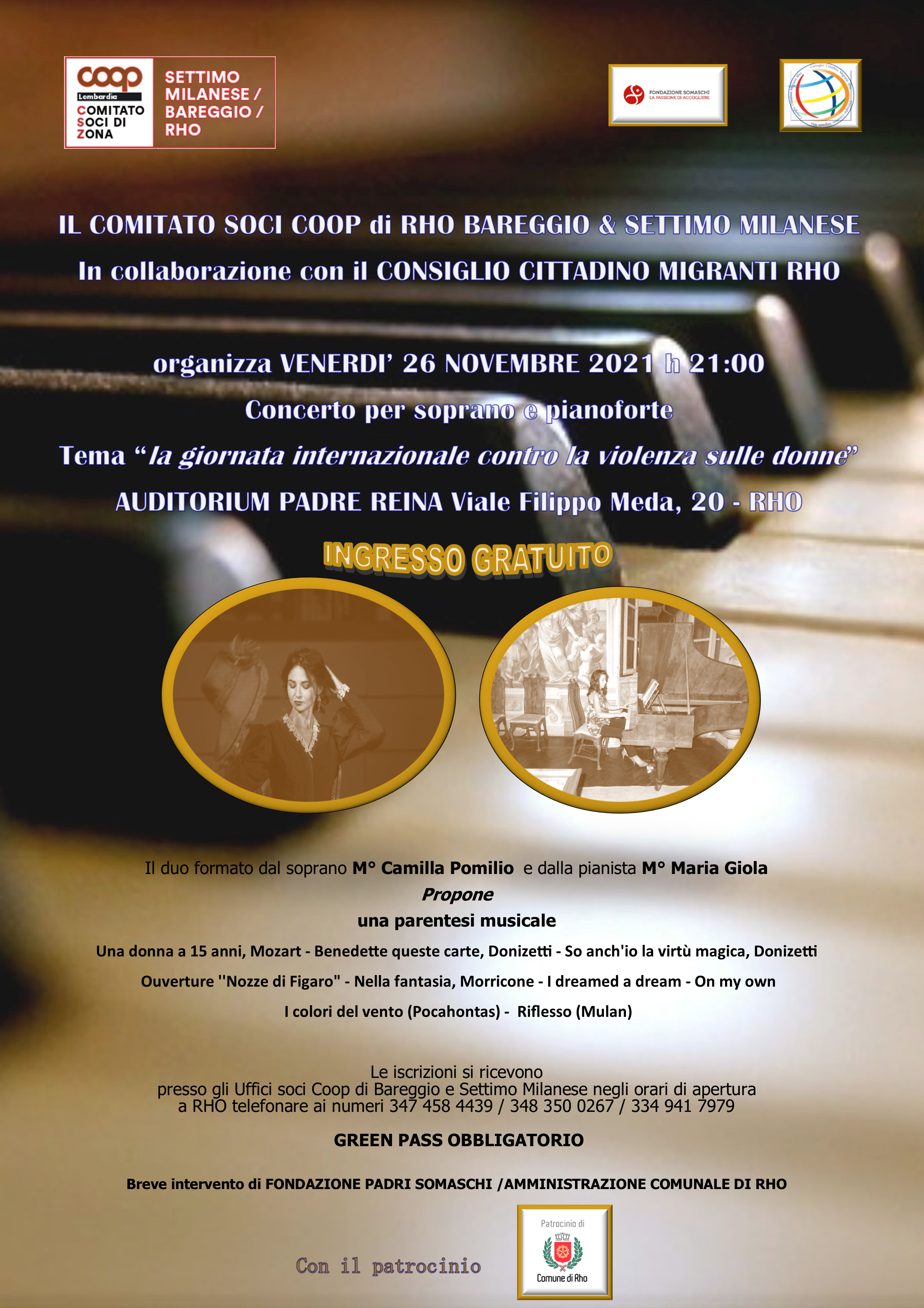 Concerto per soprano e pianoforte contro la violenza a Rho