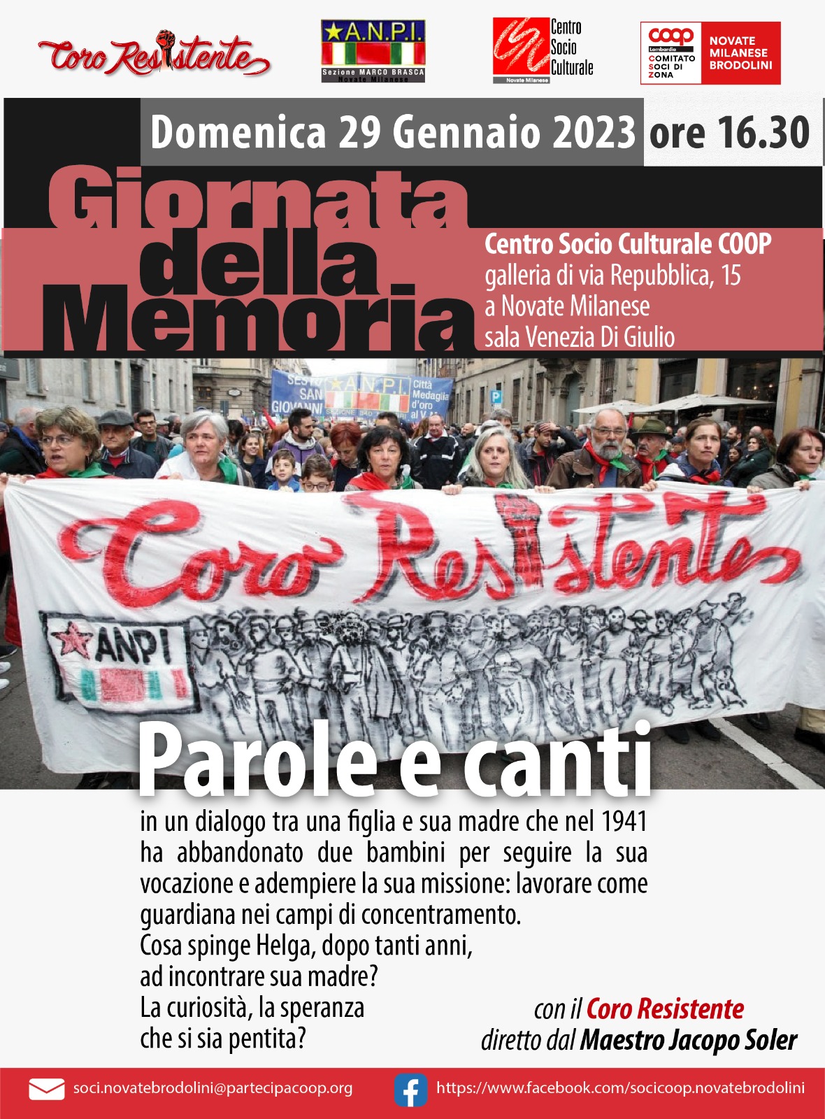 “Parole e canti” al Centro Socio Culturale Coop – Novate Milanese Brodolini