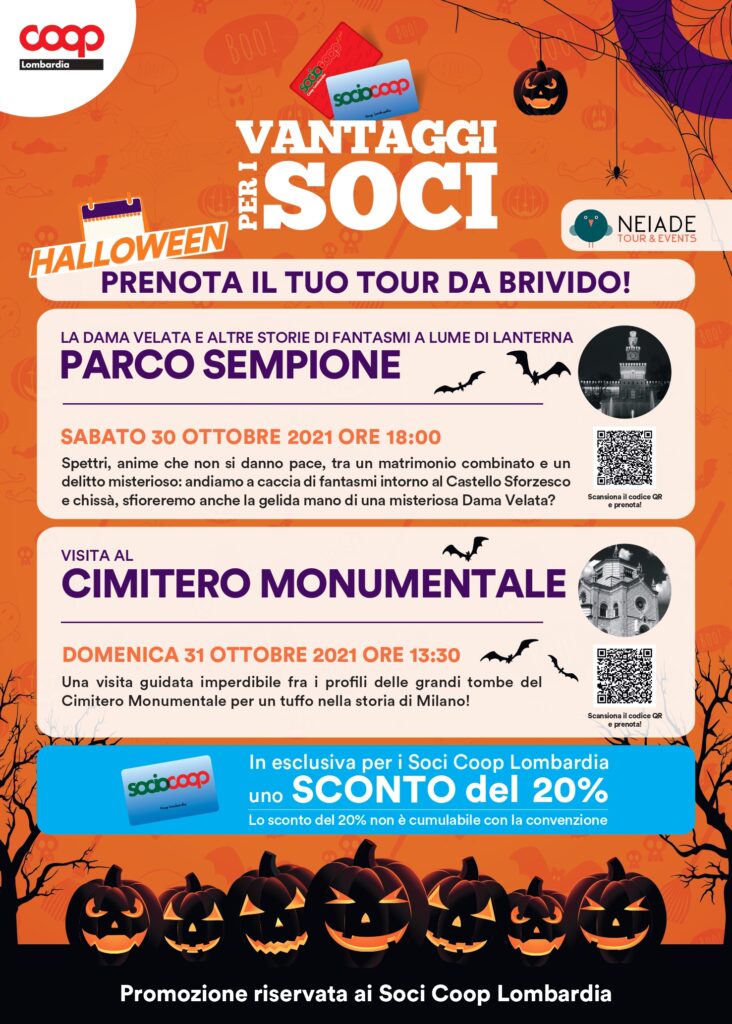Trascorri il weekend di fine ottobre alla scoperta delle storie e delle leggende paurose della città di Milano: con Neiade Tour & Events puoi farlo in due diversi appuntamenti. In esclusiva per i Soci Coop Lombardia è previsto uno sconto del 20% sul biglietto per entrambe le esperienze!