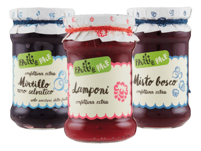 I prodotti Frutti di Pace sono nettari e confetture al gusto di more, mirtillo nero selvatico, mirtillo rosso, lamponi, sambuco, misto bosco, che si trovano in tutti i punti vendita Coop Lombardia, supermercati e ipermercati.