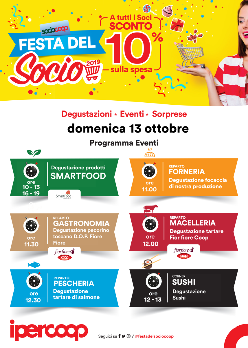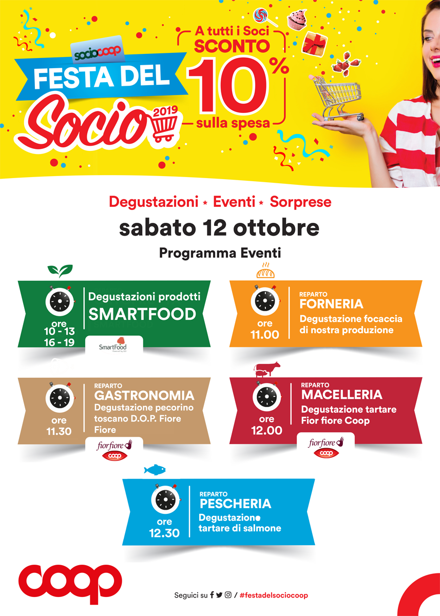 Tornano le feste del socio, un weekend di promozioni speciali, visite nei reparti, degustazioni di eccellenze, eventi, sorprese e lo sconto sulla spesa per tutti i nostri Soci.