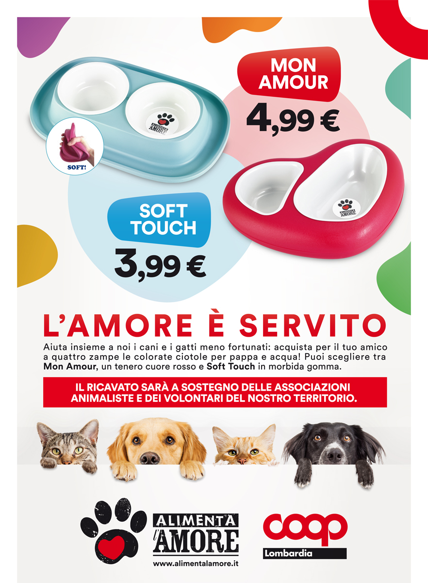 Le ciotole di Alimenta l'Amore in tutti i nostri negoziDal 15 ottobre saranno disponibili in tutti i negozi Coop Lombardia le colorate ciotole di Alimenta l’Amore.