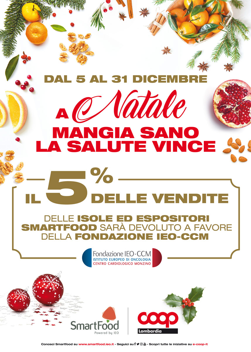 E per creare un pasto equilibrato e salutare, seguendo le indicazioni del piatto sano, ricorda che nei nostri negozi trovi anche il Ricettario Smartfood, che sarà protagonista di una vendita straordinaria in cassa dal 6 all’8 dicembre. Il ricettario propone alcune ricette tratte dal sito smartfood.ieo.it e realizzate dai followers dei canali social di Smartfood e dalle stesse componenti del team dello IEO.