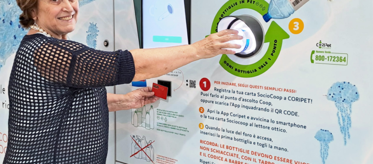 Un ecocompattatore Coripet per riciclare le bottiglie in PET è stato installato anche a all'Ipercoop di Cremona.