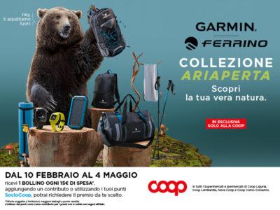 In tutti i punti vendita Coop Lombardia ti aspettano i prodotti per le tue avventure all'aria aperta firmati da Ferrino e Garmin.
