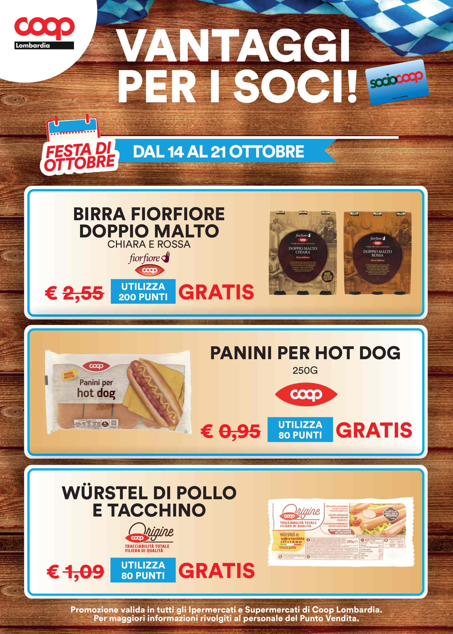 La promozione è valida in tutti gli Ipercoop e i Supermercati di Coop Lombardia: ti aspettiamo per festeggiare insieme la Festa di ottobre. Per maggiori informazioni, rivolgiti al personale Coop nel tuo punto vendita di fiducia.